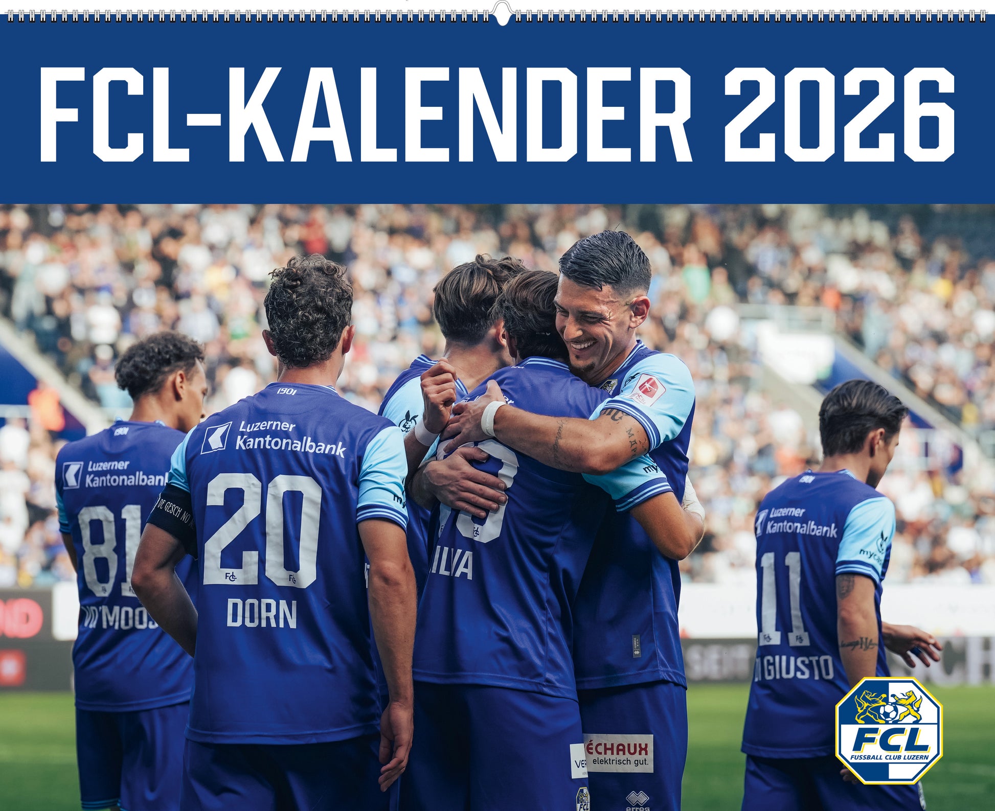Hol dir den neuen FCL-Kalender zu dir nach Hause! Monat für Monat gibt es eine packende Fussball-Szene aus der Saison 25/26. Auf den 12 Kalenderblättern findest du die Spieler mit den Spielerinfos. Ein absolutes Muss für jeden FCL-Fan.